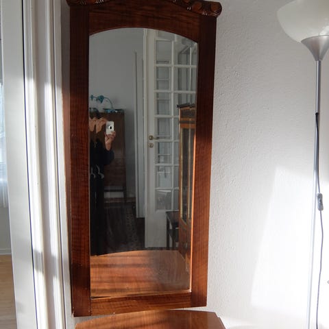 Stort ældre spejl i fyrretræ