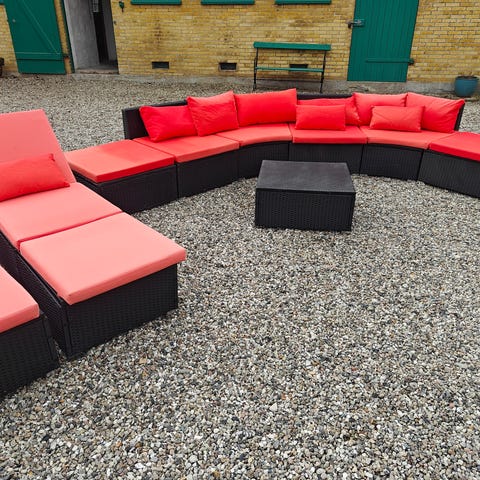 Cobana Lounge med puf og armlæn i den ene side + 2 x sækkestole med puf og en bakke der passer på en puf, så den kan bruges som bord.