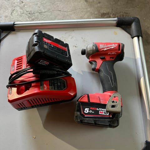 Jeg har denne Milwaukee M18 ONEDD3 bore skruemaskine som jeg gerne vil sælge. Den er ikke brugt særlig meget og fremstår stort set som ny.