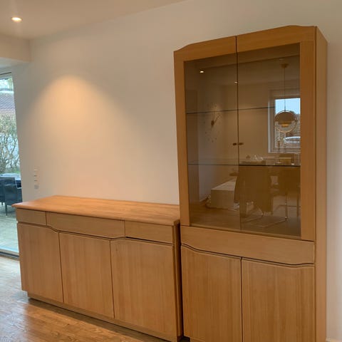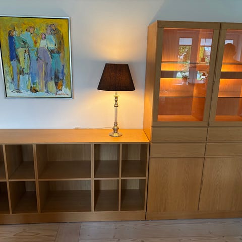 Sæbebehandlet massiv bøg. 6 rum til bøger eller nips.