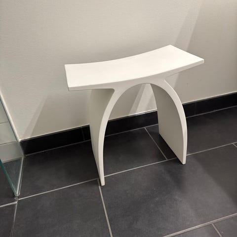 Badestol sælges, da vi hellere vil have en med store hjul. Nok mest optimal hvis man har en smule gangfunktion. Stolen kan klappes sammen for nem opbevaring og transport og er egnet til brug på badeværelse.