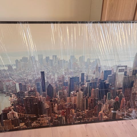 KÆMPE STORT The Manhattan Skyline i ramme Henri Silberman, Bredde 125 x H:95
