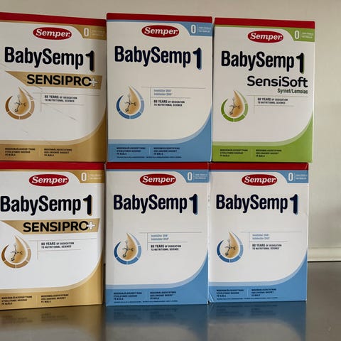 Seks og en halv pakker uåbnet Semper Babysemp 1 Sensipro. Holdbarhed til oktober 2027.