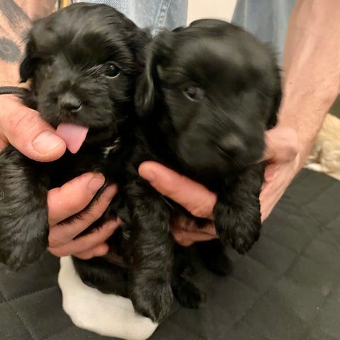 Disse 2 sorte og skønne maltipoo/havaton han-hvalpe søger nyt hjem fra ultimo april i uge 18 hvor de bliver 9 uger.