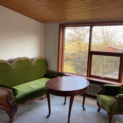 Super flot og velholdt hjørnesofa i mørkegrøn velour - "en sofa man ikke måtte sidde i hos min mor" se prismærke