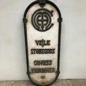 Ovalt hvælvet skilt i kraftig støbejern,fra Kbh Gas & Vandmesterforeningen af 1895.