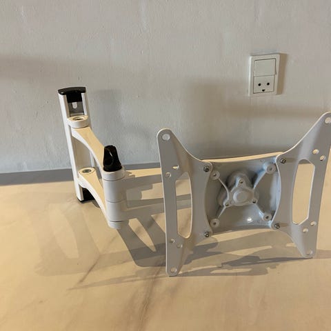 Vægbeslag til tv i sort metal. Beslaget er justerbart med led, så tv’et kan vippes og drejes fra væggen. Egnet til montering af fladskærms-tv på væg, hvor der er behov for fleksibel placering og mulighed for at ændre betragtningsvinkel. Monteringshuller i beslagets arme giver mulighed for tilpasning til forskellige VESA-standarder, afhængigt af tv’ets størrelse og hulafstand. Velegnet til brug i stue, soveværelse eller kontor, hvor tv’et ønskes ophængt på væggen.