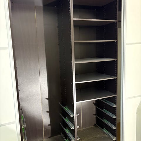 1 enkelt skab a 50 x 200 cm. Dybde 60 cm.