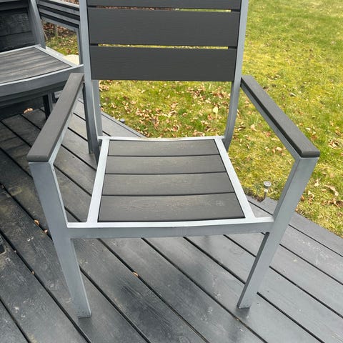 Sort havestol i metal med armlæn. Stolen har netmønster i sæde og ryg samt slanke ben. Kan stables med lignende stole for nem opbevaring. Velegnet til brug på terrasse, altan eller i haven.