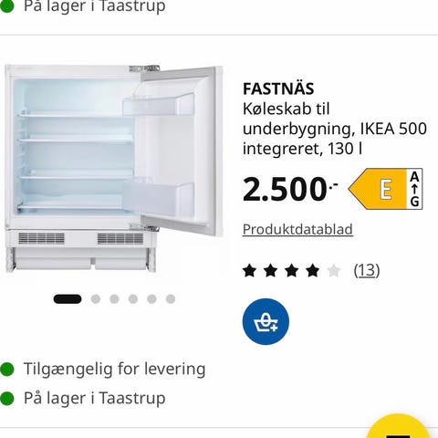 IKEA Ytternäs skabsfryser til underbygning i hvid. Fryseren har tre gennemsigtige skuffer, som giver overblik over indholdet. Modellen er beregnet til integrering under bordplade og har hængslet låge. Velegnet som ekstra fryseplads i køkken eller bryggers.