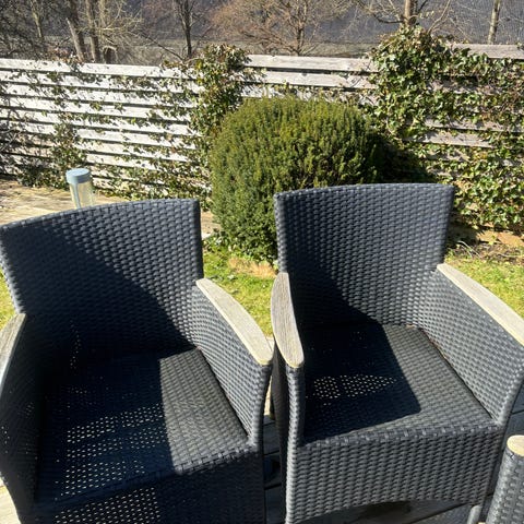 Havestole / Kurvestole i lyst grå-brunt polyrattan