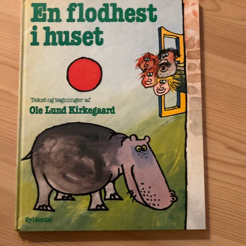 Ole Lund Kirkegaard "En flodhest i huset" børnebog på norsk. Bogen er illustreret og skrevet af Ole Lund Kirkegaard. Oversatt til norsk. Brugt, med nogle brugsspor, men fremstår i ok stand.