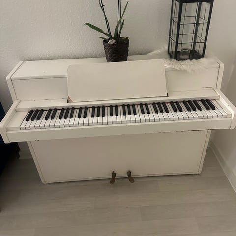 Opretstående akustisk klaver i sort finish. Standard klaviatur med 88 tangenter. Ene pedal fungere umiddelbart ikke.