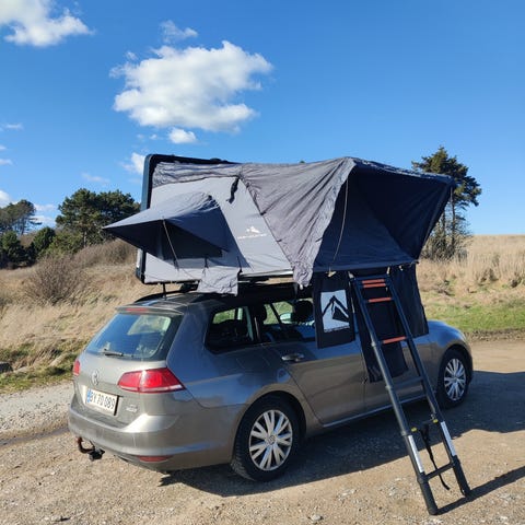 Medfølger: markise, madrasunderlag, tent tiedown, opbevaringslommer, deluxe dobbelt madras, deluxe single madras, LED kit. (Se billede for ekstra udstyr)