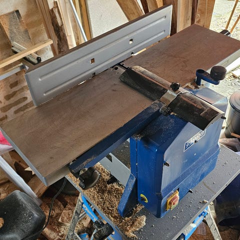 Jeg har serviceret maskinen for halvandet år siden, smurt lejer og strammet kæden der driver fremdriften i tykkelseshøvlen.