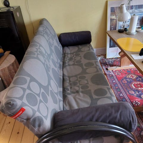 Sovesofa med Verner Panton stof.