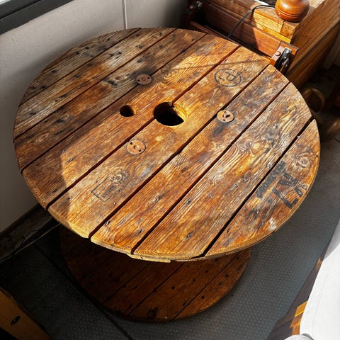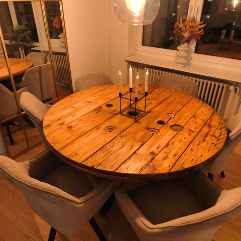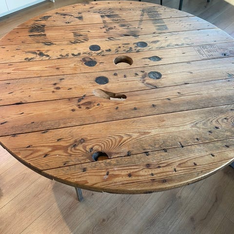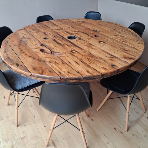 Kabeltromle spisebord Ø140 cm.