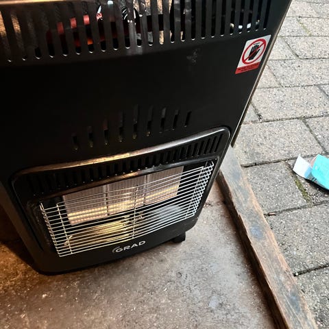 Norvarm gasovn i grå farve. Transportabel model med plads til gasflaske indvendigt og tilslutning via gasslange og regulator. Ovnen har betjeningspanel på toppen med regulering af varme og tænding. Egnet til opvarmning af mindre rum, fx udestue, værksted eller lignende, hvor gasopvarmning er tilladt og ventilation er mulig. Tekniske data og godkendelser fremgår af typeskiltet indvendigt på ovnen.