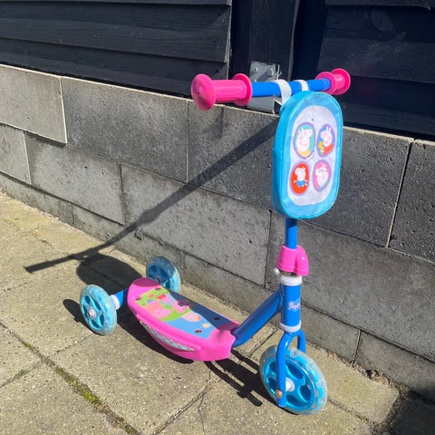 Gurli Gris løbehjul til børn med tre hjul. Er kun brugt udenfor et par gange, resten af tiden indenfor og er derfor i rigtig pæn stand.
