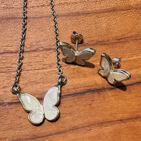 halskæden er hvid og 41 cm lang - armbånd ligeså hvid, og Passer håndleds størrelse 19cm