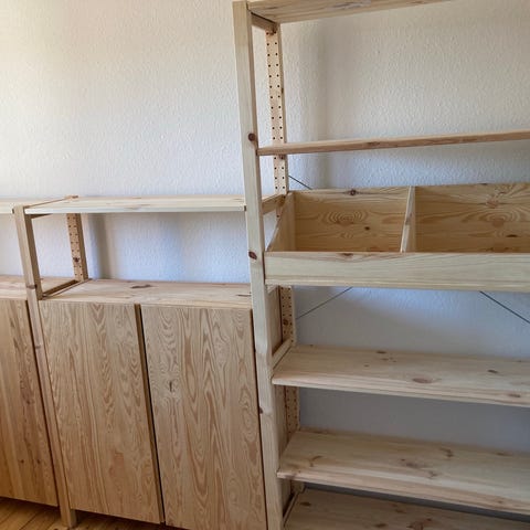 Ivar reol 80x30x83 - malet i en turkis / sart og orange hylder . Der er et mindre hul til ledning(se billed) 200kr