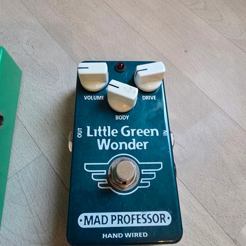 Mad Professor Little Green Wonder Overdrive Pedal. Denne pedal er designet til at give en alsidig overdrive-lyd. Den har kontroller for Volume, Body og Drive, som giver brugeren mulighed for at forme lyden efter behov. Pedalen er handwired.