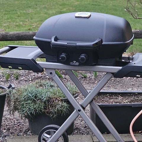 Napoleon 285 Travel Q gasgrill med låg og sideborde grå