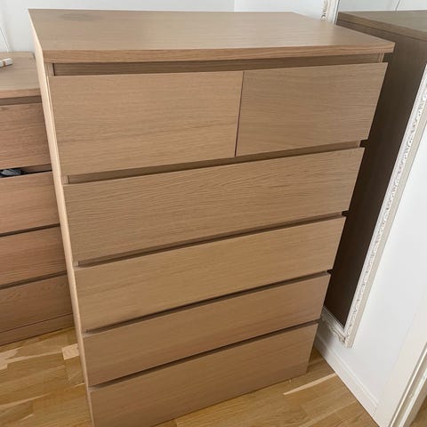 Hvid og lyserød kommode (model Småstad) fra IKEA med 6 rummelige skuffer i rigtig fin stand.