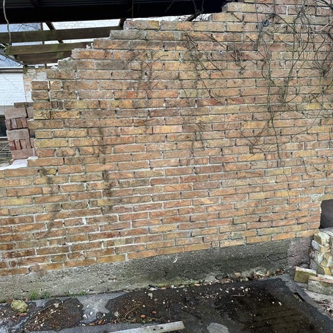 Mursten fra hus fra 1945 som er revet med. Har ca 250.
