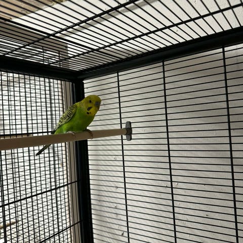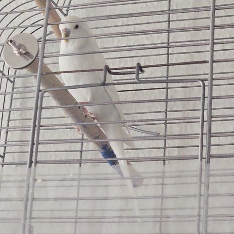 Fin lille han undulat gives væk, han er 1 år gammel og er begyndt at side lidt på fingeren.