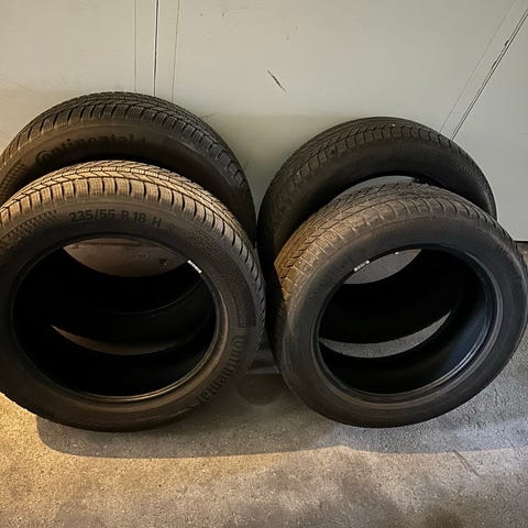 4 stk Hancock vinterdæk, 225/55-18 har kørt 2500-3000 km. Så har masser af mønster tilbage.
