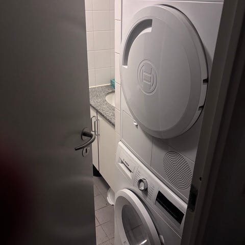 Praktisk kombimaskine med både vaske- og tørrefunktion, så den er ideel til lejlighed eller bolig, hvor man ønsker at spare plads.