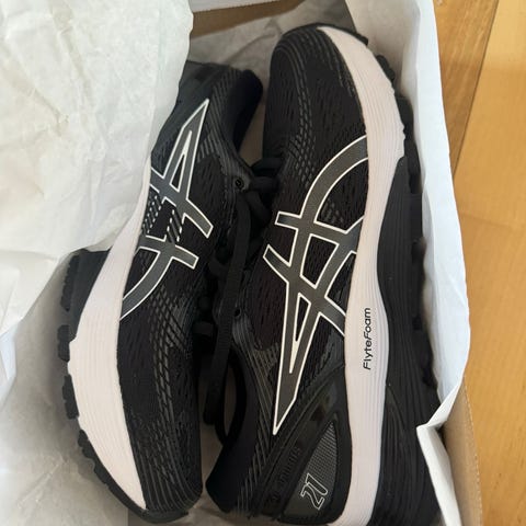 Asics Gel løbesko i størrelse 39. Modellen er en løbesko med Gel-stødabsorbering i hælen. Skoene er i navy/blå med gule detaljer og reflekselementer. Overdelen er i mesh med syntetiske forstærkninger, og ydersålen er i gummi. Velegnet til løb og anden træning. Kort anvendt.