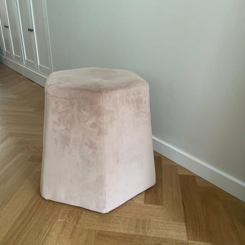 Sødeste grønstribede puffer, perfekt til lænestole og en god bog. Købt i vintagebutik i København. Tegn på slid og brug, se billeder. Synes stadig den fremstår flot.