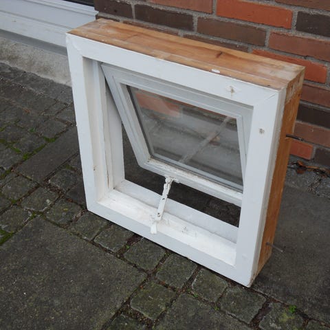 Solidt vindue som er velegnet til udhus eller skur. Mål: 58x63 cm. udvendig rammemål. Fast vindue, som ikke kan åbnes. Med enkelt mat glas. Fin lysindfald uden at man kan se ind. Vinduet har været isat i en årrække, så derfor er det billigt. Se foto 7940-41.