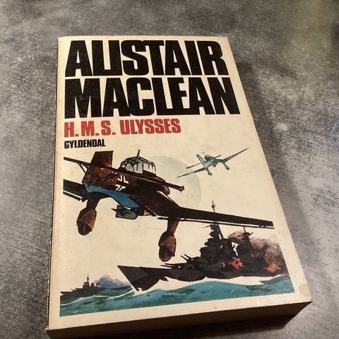 Alistair MacLean H.M.S. Ulysses bog. Dansk udgave udgivet på forlaget Gyldendal. Indbundet eksemplar med mørk blå hardback-omslag. Skønlitterær roman.