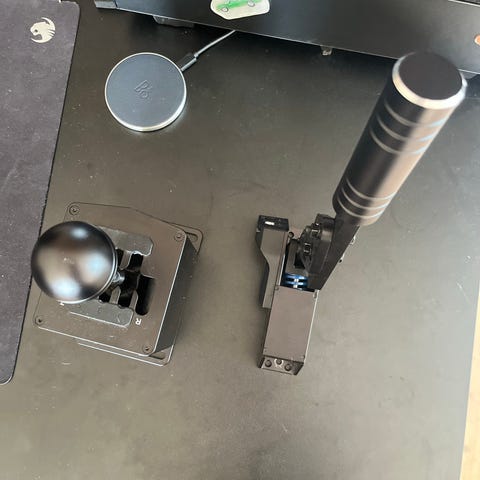 Trænger lige til en klud da det har stået og samlet lidt støv. Yderst pænt, og det perfekte setup hvis man er begrænset på plads. Der medfølger “Wheeltray” som er en foldbar metal holder til hjul på en kontor/gamerstol som gør man ikke ruller bagud når man trykker på bremsen. Virker fantastisk. Skriv gerne for spørgsmål.