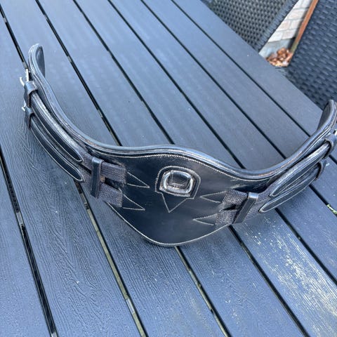 Folk Sports Equipment gjord til hest i sort. Udstyret har dobbelte spænder i metal og kraftige stropper. Egnet som gjord til sadel ved ridning og træning af hest.