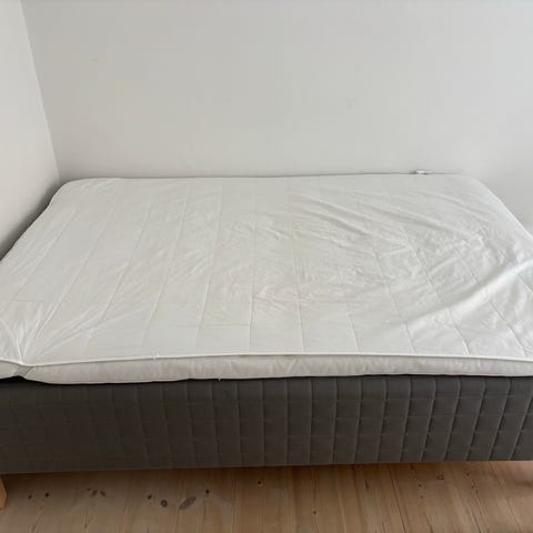 IKEA Skotterud blød madras i grå farve. Madrassen har quiltet overflade på siderne og lys top. 140 bred. Sælges uden topmadras og ben.