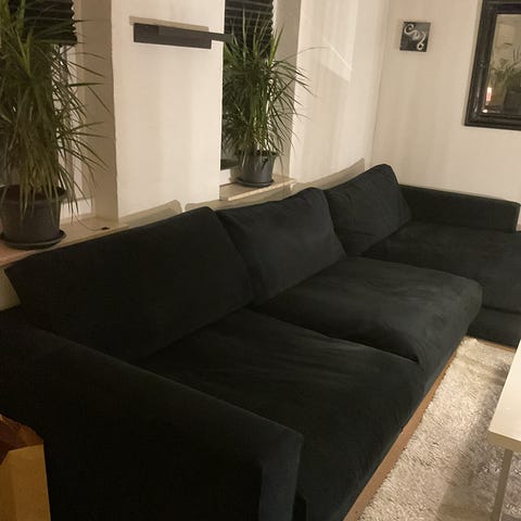 Sælger denne utroligt flotte og velholdte chaiselongsofa i en stilren mørkegrå farve. Sofaen har et moderne, minimalistisk udtryk med brede armlæn og masser af plads til afslapning. ☁️