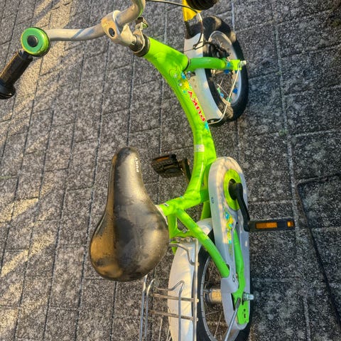 God børnecykel til 2–4 år. Den er nem at cykle på og god som første cykel. Har håndbremse, klokke og skærme. Den er i pæn stand med lidt brugsspor og klar til brug. Den har en smule rust nogle stæder og lidt på kæden. Skriv gerne et bud på prisen ellers kan du komme og se på den👍
