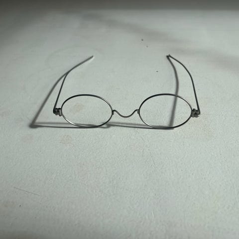 Samling af retro briller, spørsmål angående styrke og størrelser besvares ikke.