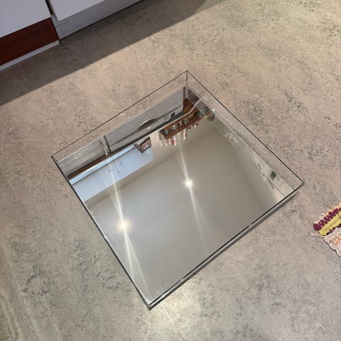 Spejl, stort - Ca. 1 m x 1 m, med facetslebne kanter og træramme -