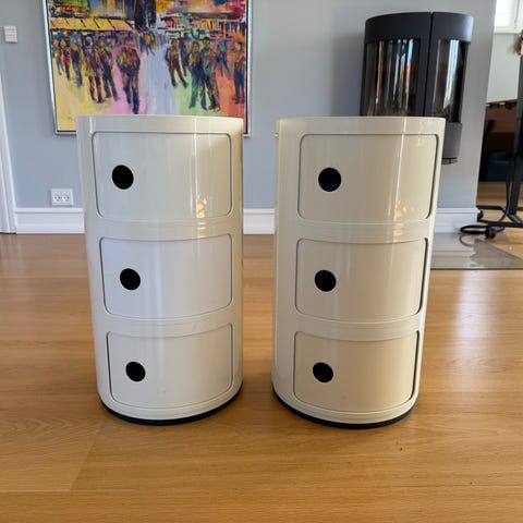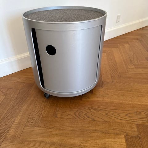 Kartell Componibili Classic opbevaringsmodul eller sengebord, rund, grå metallic med 2 rum. Designet af Anna Castelli Ferrieri