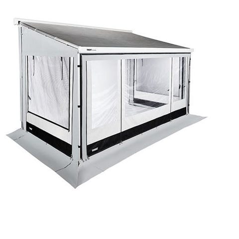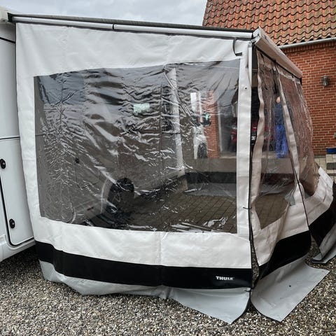Thule G3 Residence fortelt på 3,5 x 2,5m. Passer til Thule5200(3,5m) markise. Front- og sidepaneler. Teltet har store vinduespartier og myggenet i siderne, som giver lysindfald og mulighed for ventilation.. Velegnet som ekstra opholdsrum og opbevaringsplads. Kan med lidt øvelse monteres på ca. 1 time. Brugt 1 sæson.