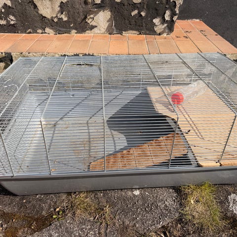 Smådyrsbur med flere etager beige plastbund og sorte tremmer