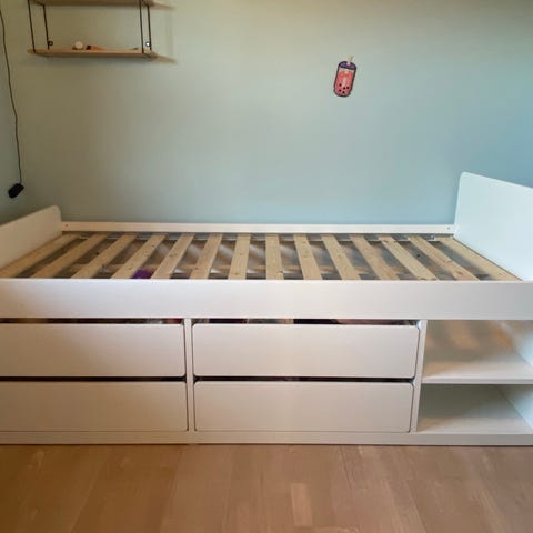 IKEA sengeramme med skuffer, hvid