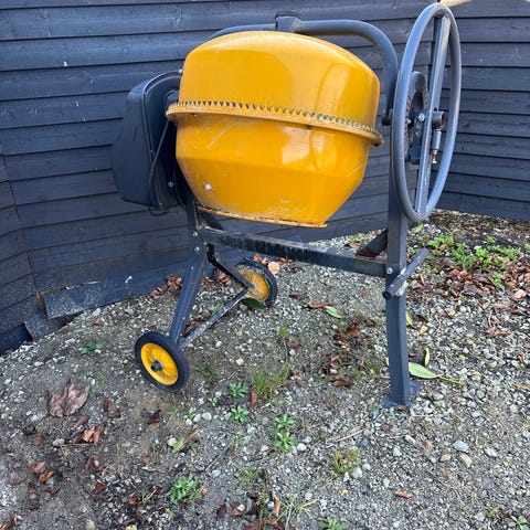 Betonblander Monteret på stel med hjul og støtteben, så den kan flyttes rundt på arbejdspladsen. Udstyret med håndhjul til at vippe tromlen samt elektrisk motorenhed med betjeningsknapper. Velegnet til blanding af beton, mørtel og lignende materialer ved bygge- og renoveringsopgaver. Det er denne model: https://www.harald-nyborg.dk/betonblander-120-l?qwerty=CjwKCAjwhLPOBhBiEiwA8_wJHDf1GJ8spGtWYl1moICC_AoK3YMp1oXvQp3OHiyJ6OjJlYJ2cTeQ0xoCpkcQAvD_BwE&gad_source=1&gad_campaignid=15244400068&gbraid=0AAAAAC5s-mWrwEK4BN87WJHwJBQRif8lv&gclid=CjwKCAjwhLPOBhBiEiwA8_wJHDf1GJ8spGtWYl1moICC_AoK3YMp1oXvQp3OHiyJ6OjJlYJ2cTeQ0xoCpkcQAvD_BwE Halvt år gammel. Fungerer upåklageligt…