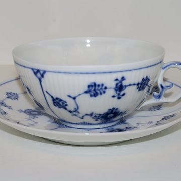 Royal Copenhagen Musselmalet Riflet, ekstra stor tekop også kaldet en kontorkop eller morgenkop.