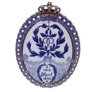 Royal Copenhagen Mindeplatte fra 1897 med guldkant Dronni